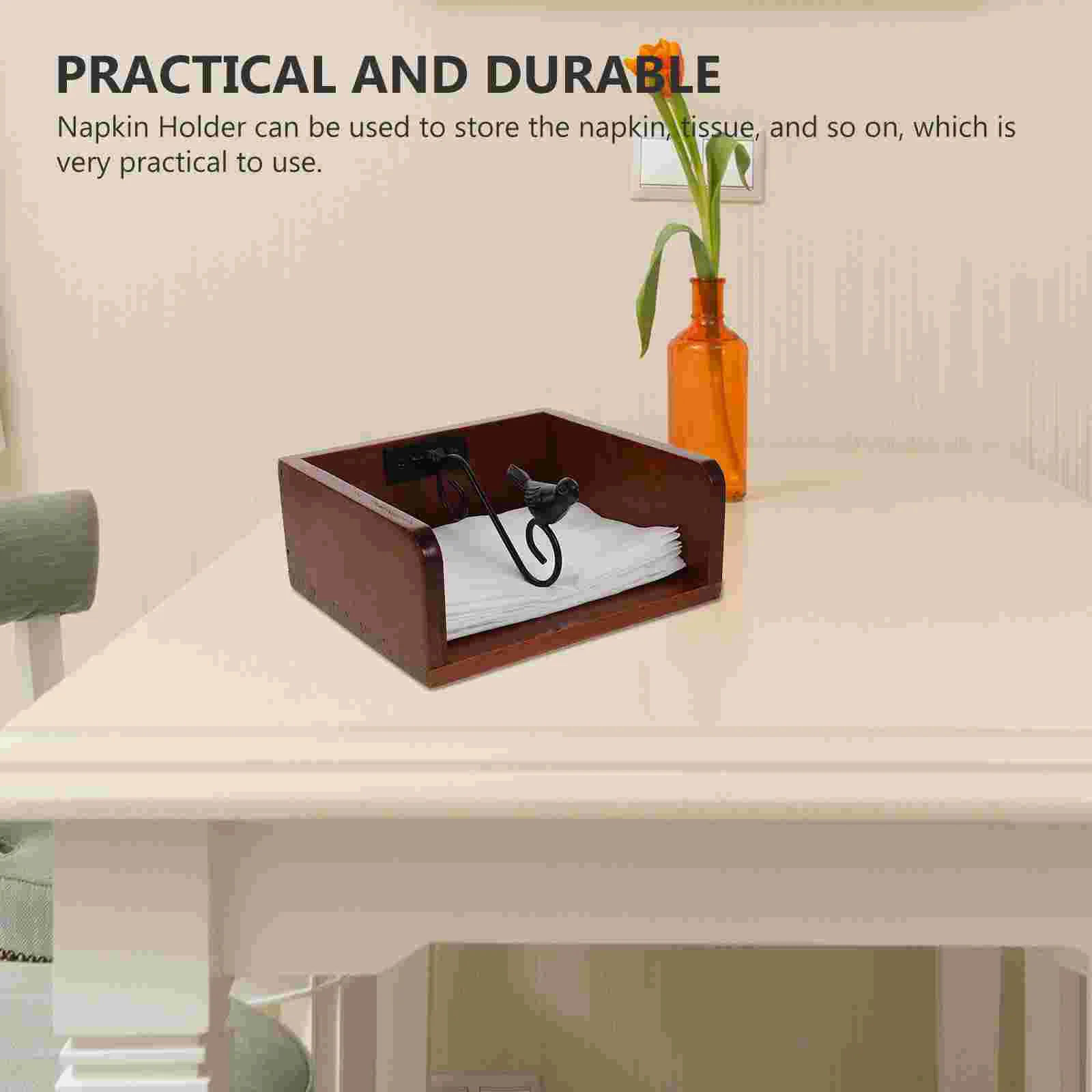 Solid Wood Retro Napkin Holder Kitchen Dining Bar Tissue Dispenser Paper ganizer Place Card Holder Tabletop Marker